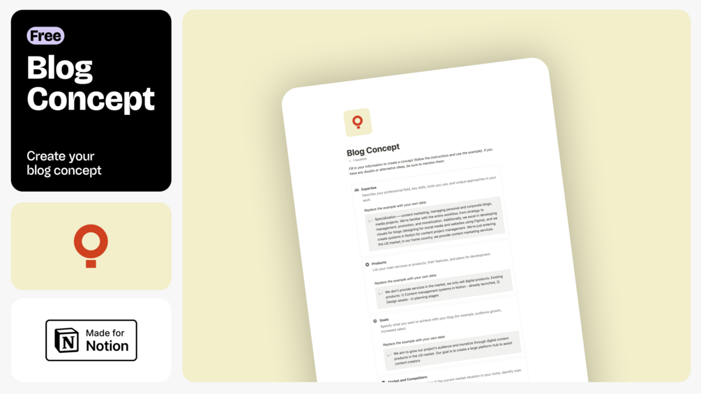 This template with examples is for self-completion. It's a starting point for creating your blog concept, after which you can decide whether to proceed with the project ✨